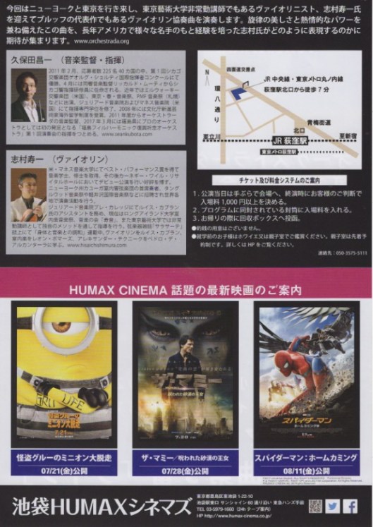 9/30@杉並公会堂、ブルッフ:ヴァイオリン協奏曲 with 久保田昌一/オーケストラーダ