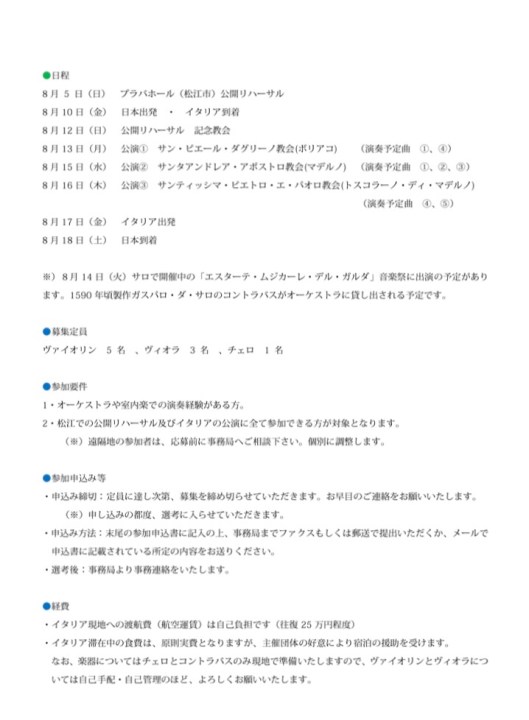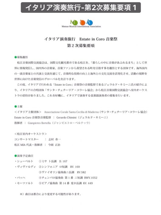 イタリアで一緒に演奏しませんか?(^^