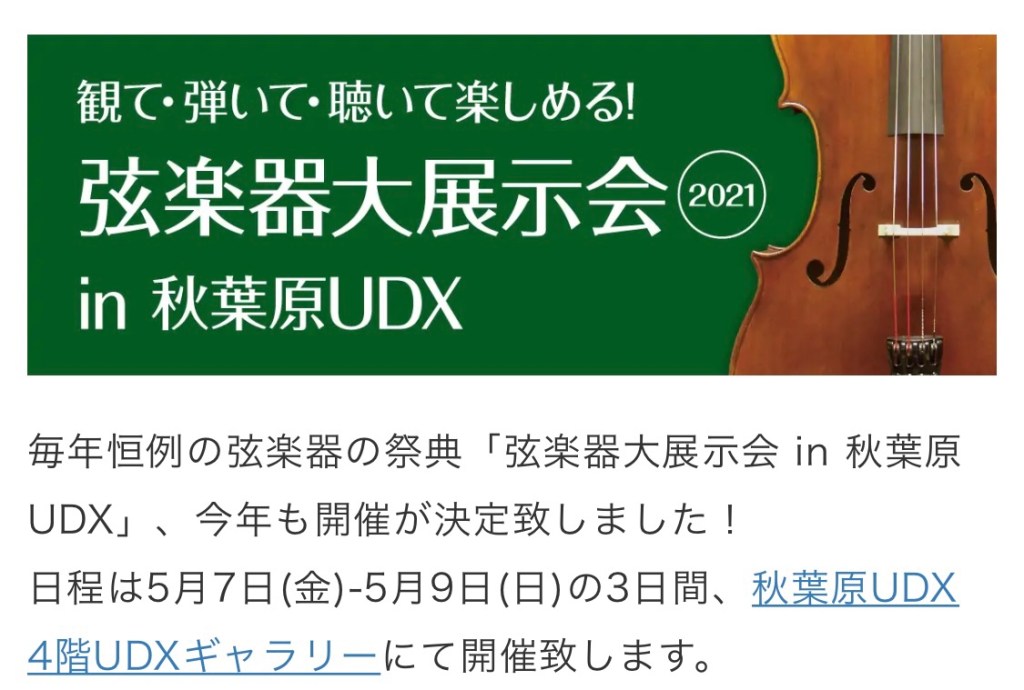 【終了】<弦楽器の祭典>「 弦楽器大展示会 in 秋葉原UDX 2021」 5月7日(金)-5月9日(日) 開催のご案内